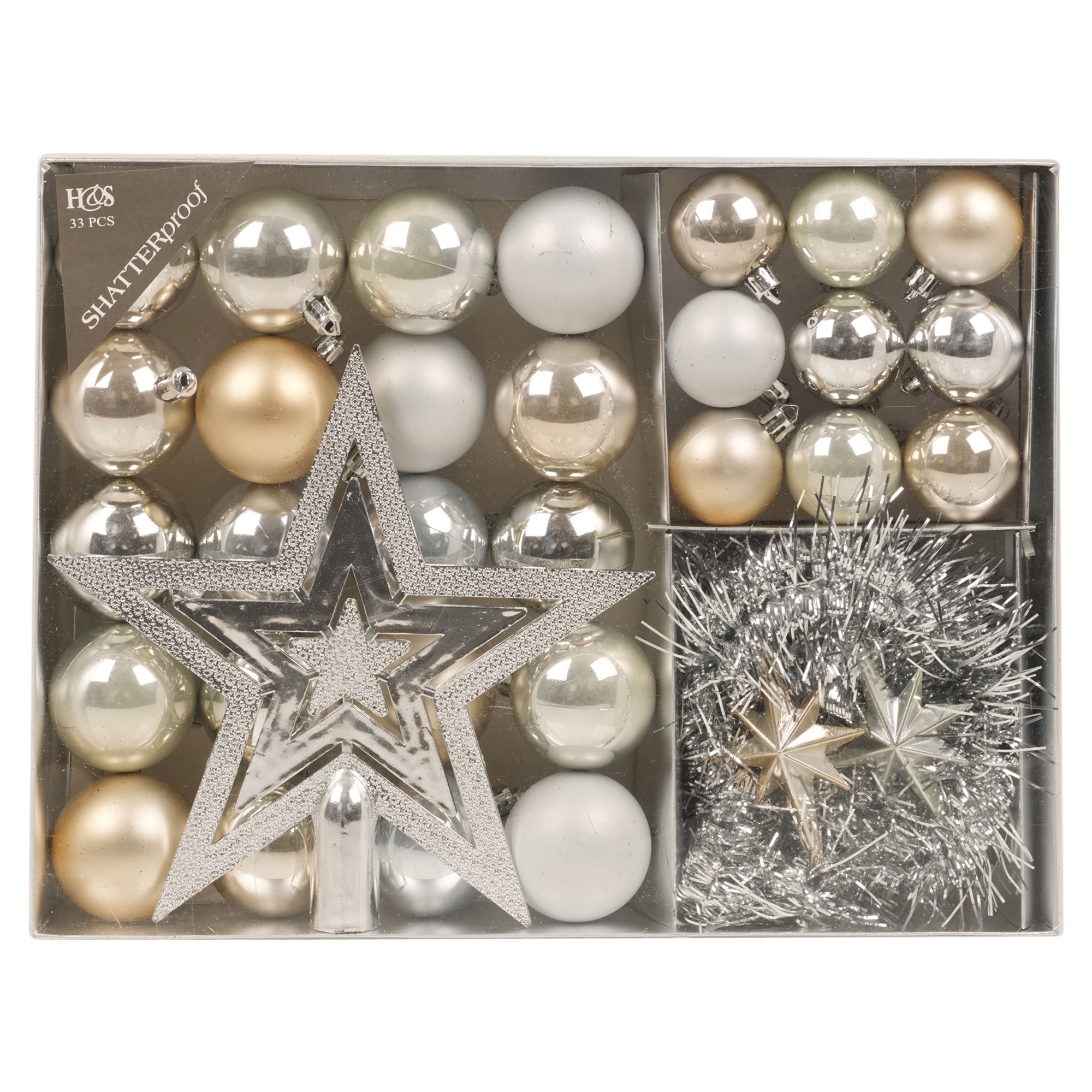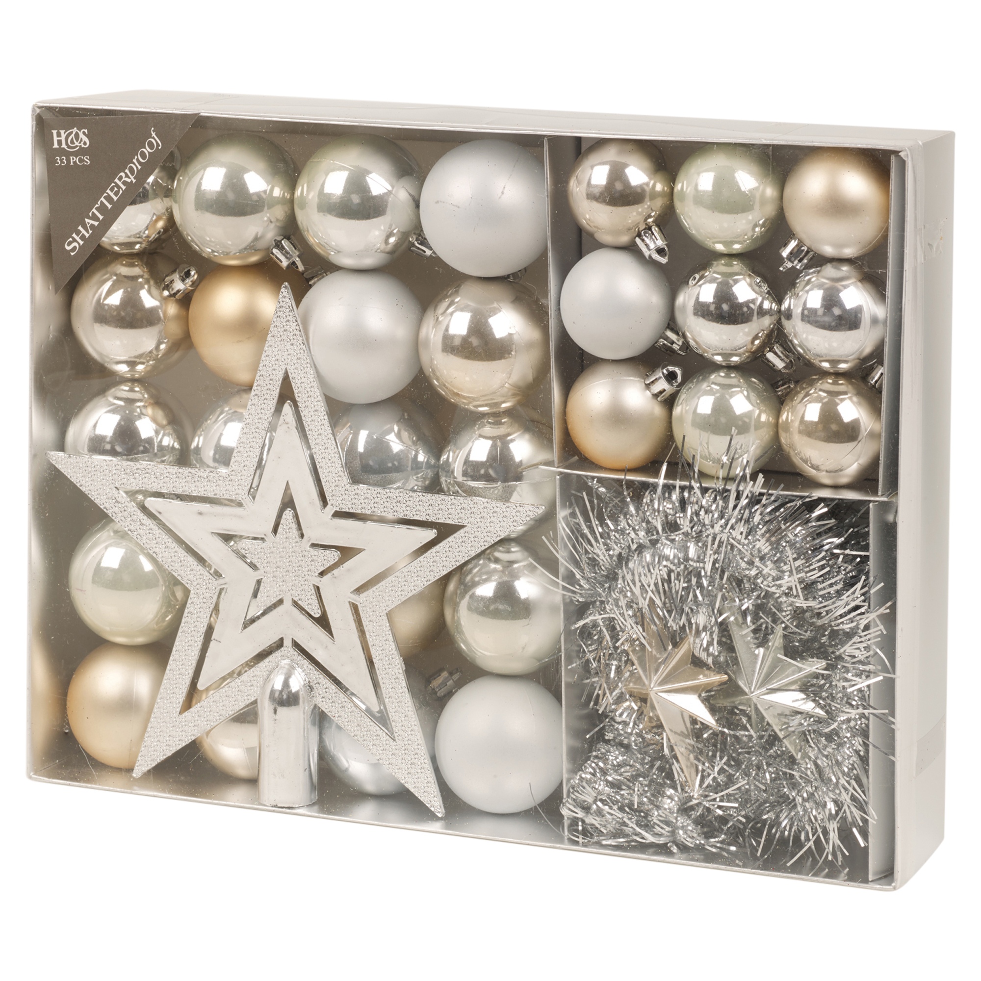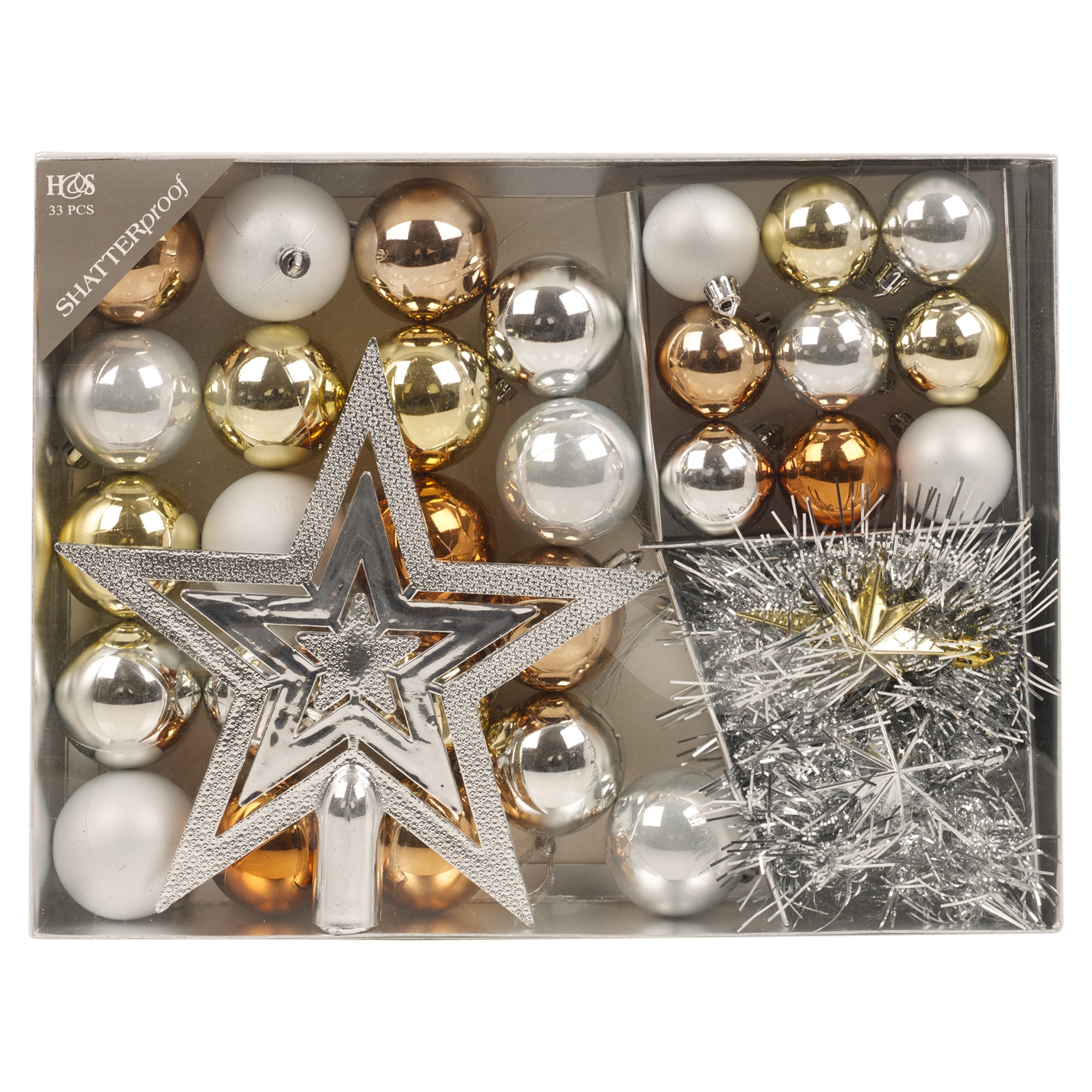 33 Pcs Christmas Tree Decoration Baubles Set Xmas Shatterproof Balls Ornaments