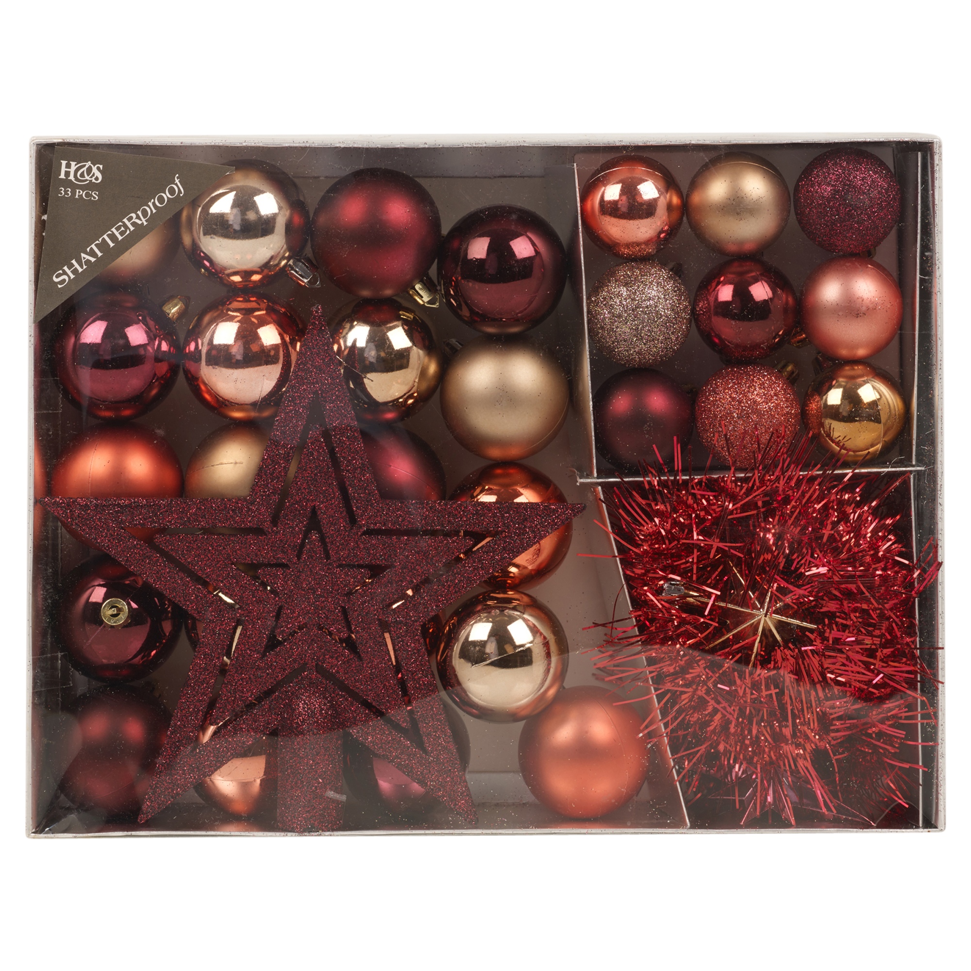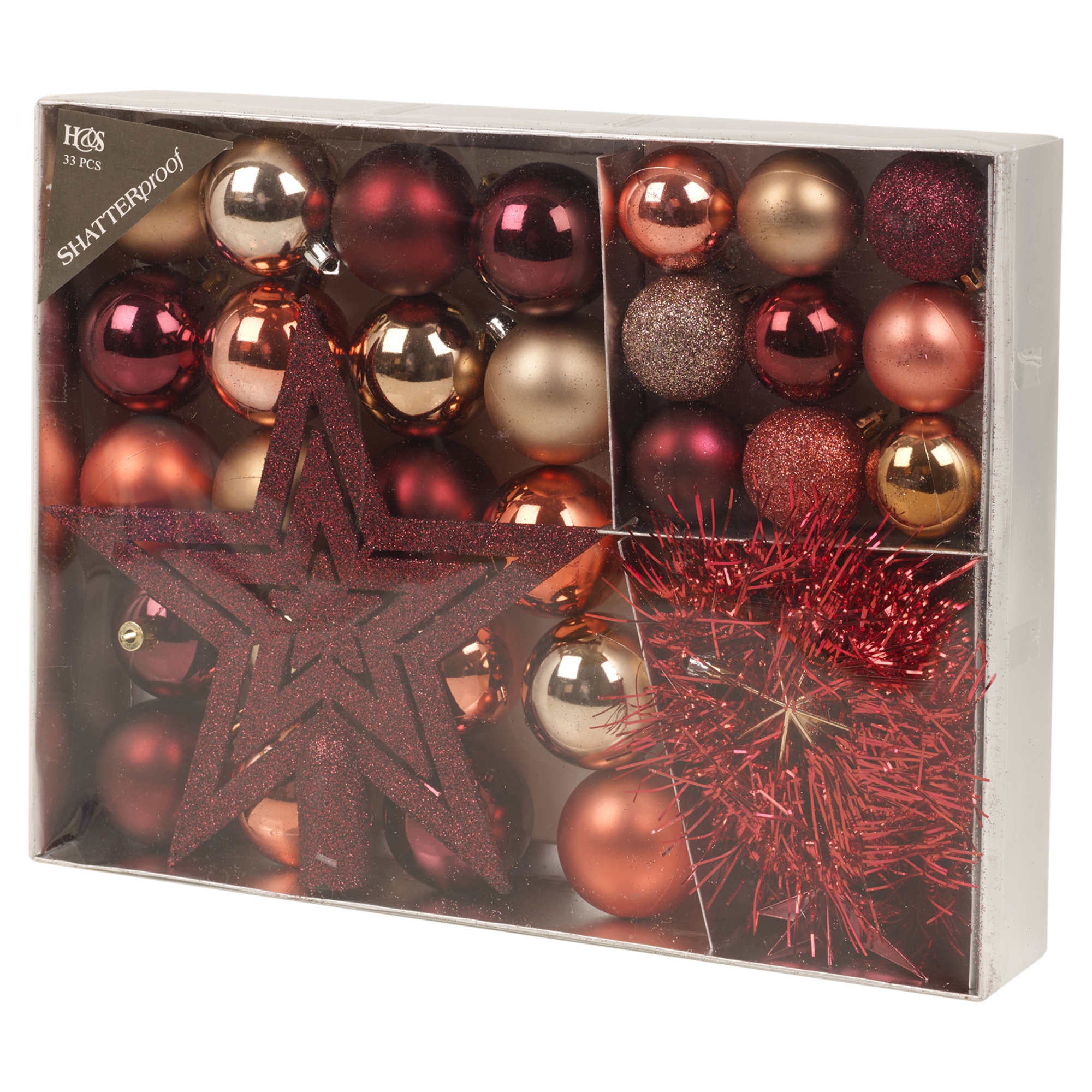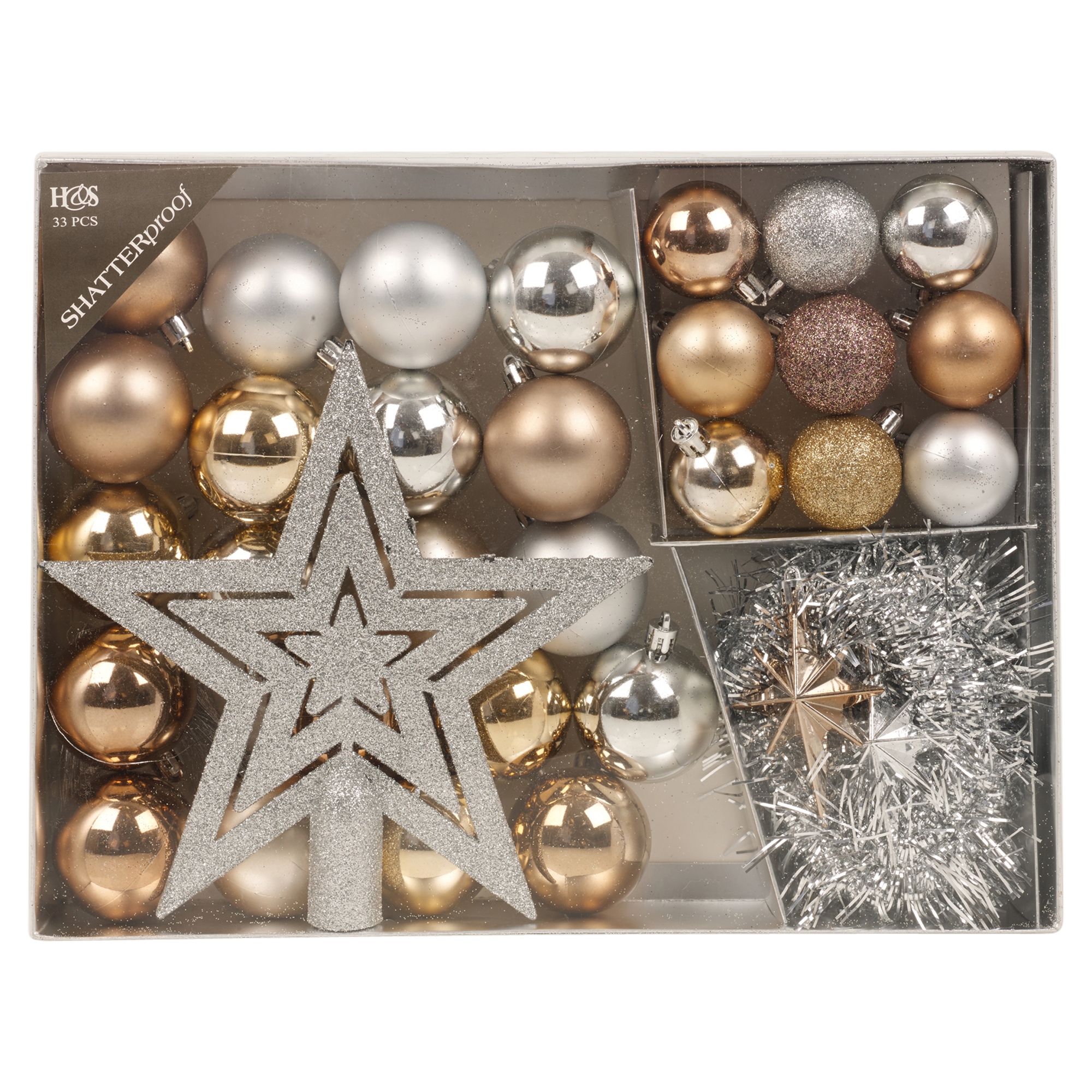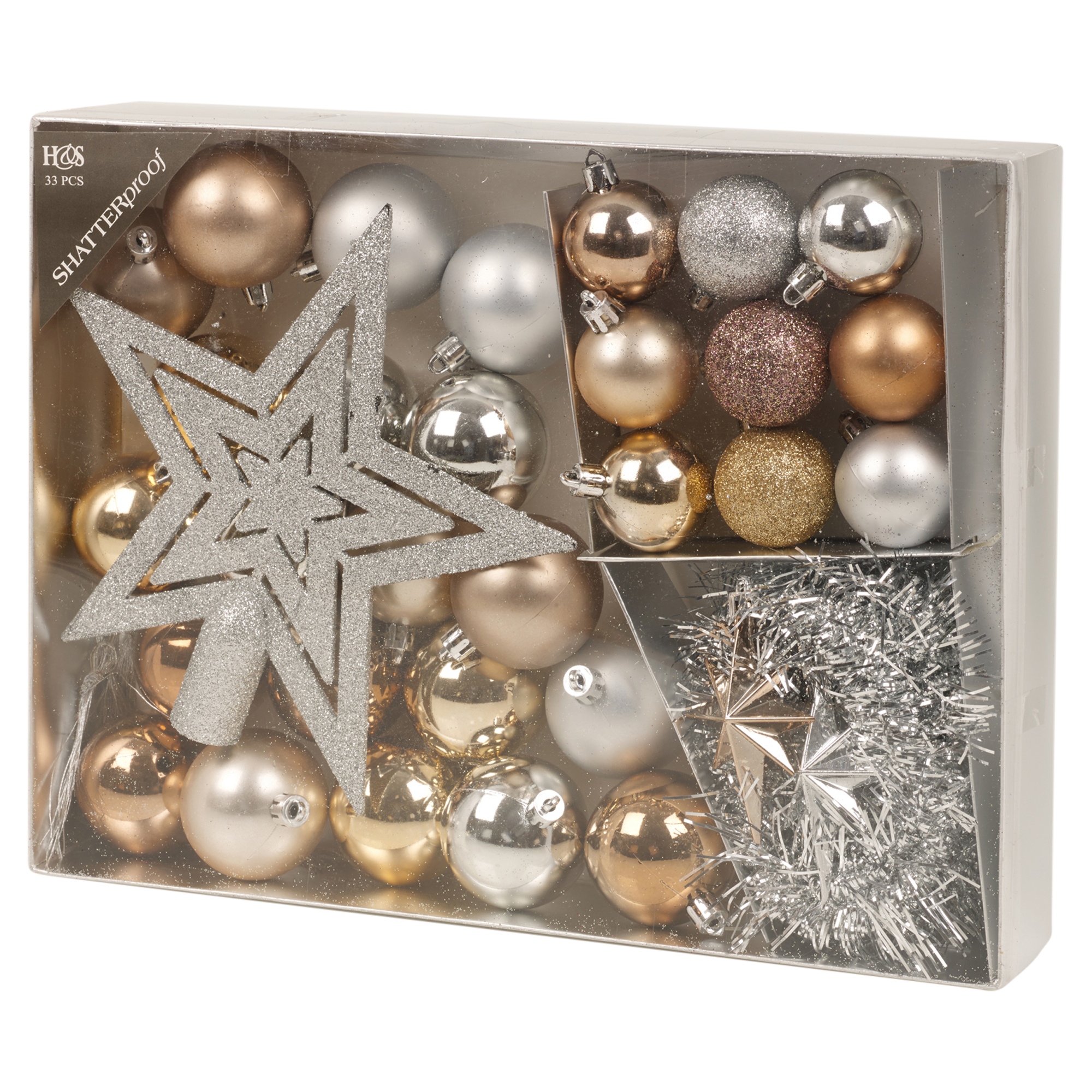 33 Pcs Christmas Tree Decoration Baubles Set Xmas Shatterproof Balls Ornaments