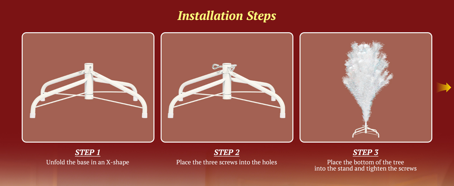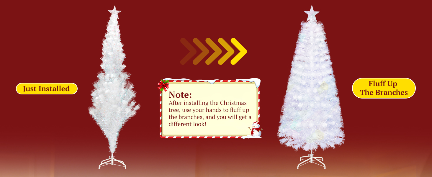 【Easy & Time-Saving Installation】Simply assemble the Christmas tree with the stand, connect the wires(you need to connect the two parts of the Christmas tree light string, and the optical fiber will light up after power is turned on), and spread out all the branches to create a festive Christmas tree
